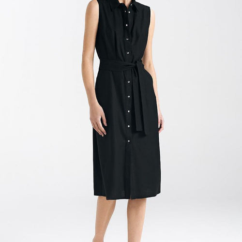 A regular fit shirt dress made from a blend of viscose, linen, and cotton is the perfect combination of elegance and comfort. It features a classic collar and is sleeveless, which adds lightness and style. The silver snap fastening adds a modern touch and makes it easy to put on. The midi length makes this dress suitable for various occasions,...