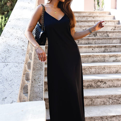 Heavenly, long lingerie-style dress made of high-quality flowing satin fabric without lining. This dress can be worn for any occasion and throughout the year. Its timelessness is achieved through its minimalist cut and matte finish. Thin, adjustable straps allow for a perfect fit, while a daring side slit draws attention. Designed to perfectly pair with heels and sexy sandals, as...