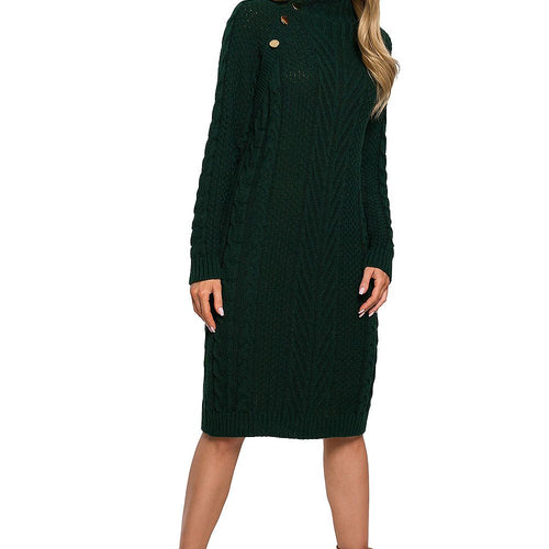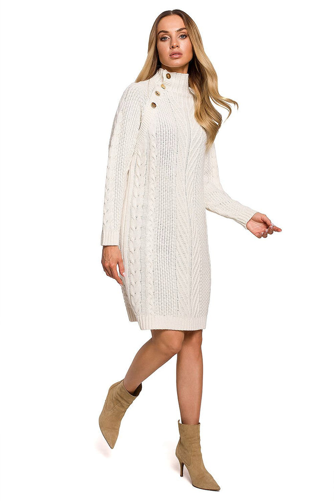Ultra comfortable and original knee-length dress with high collar, made of warm, fleshy knitwear with scratchy bottom is the best choice for cold days. Cotton 90 % Polyester 10 % Size Lenght Hips Chest Waist L 97 cm 112 cm 102 cm 98 cm M 96.5 cm 106 cm 96 cm 92 cm S 96 cm 100 cm 90 cm...