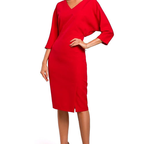 Pencil skirt cut and a slightly looser top with dropped sleeves that taper to the bottom and a V neckline. Dress is unlined. It is femininity in every inch. Spandex 5 % Polyester 95 % Size Lenght Hips Chest Waist L 100 cm 102 cm 116 cm 84 cm M 100 cm 99 cm 112 cm 79 cm S 100...