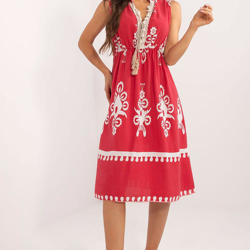 This summer boho dress is the perfect choice for everyday styling. Made of dominant viscose, it provides comfort and breathability on warm days. The flared midi cut gives it a light and casual feel, fitting perfectly with the boho style. The dress has a contrasting print, which adds definition and draws the eye. Sleeveless, with an elegant stand-up collar and...