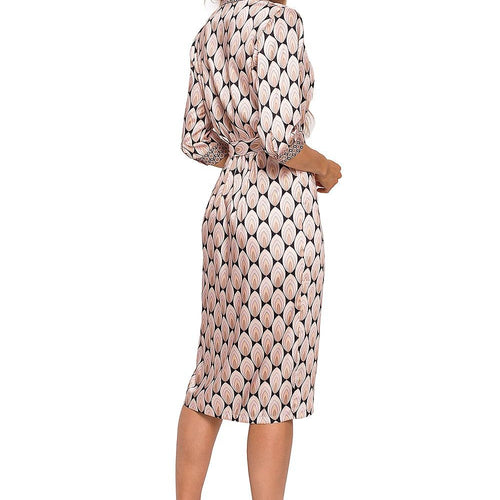 A pencil midi doesn't have to be boring if it's sewn from a fabric with an interesting multicolor print. We also took care of the details such as the collar, the fastening under the neck and the tied belt, which will further emphasize the waist. The dress is tucked in over the head. Spandex 5 % Polyester 95 % Size...