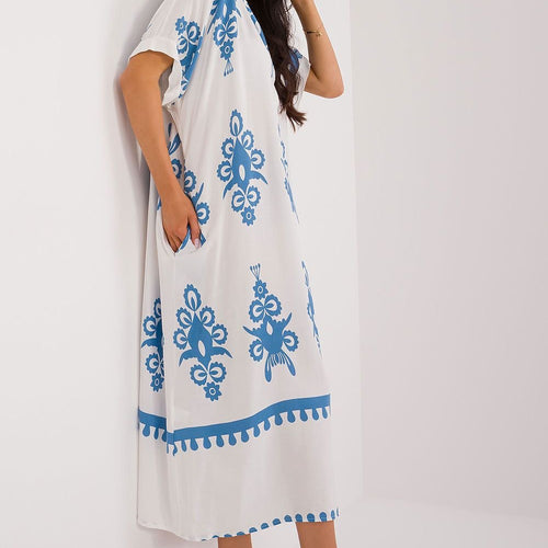 Summer boho dress, perfect for everyday and work. This everyday oversize cut shirt dress provides comfort and freedom of movement, combining style with comfort. The dress is decorated with a colorful print that adds a fresh and energetic look. It is made of viscose, the dominant material, guaranteeing breathability and wearing pleasure. The dress reaches to the knees (midi length)...