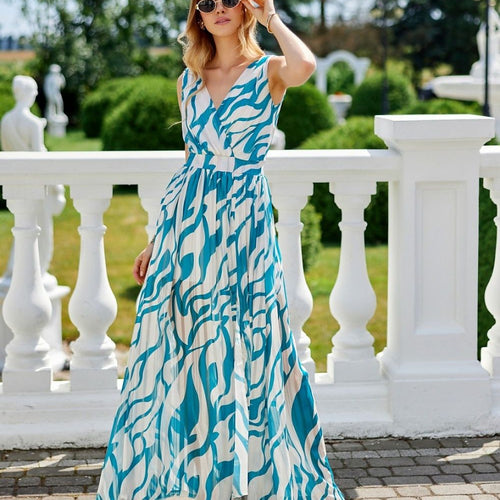 This maxi dress with colorful print is an ideal choice for various occasions, both casual and formal. Made of predominantly polyester, it is durable and comfortable to wear. The dress features an envelope neckline, which adds to its elegance and femininity. The flared cut provides freedom of movement and a stylish look, while the buff, long sleeve adds sophistication. The...