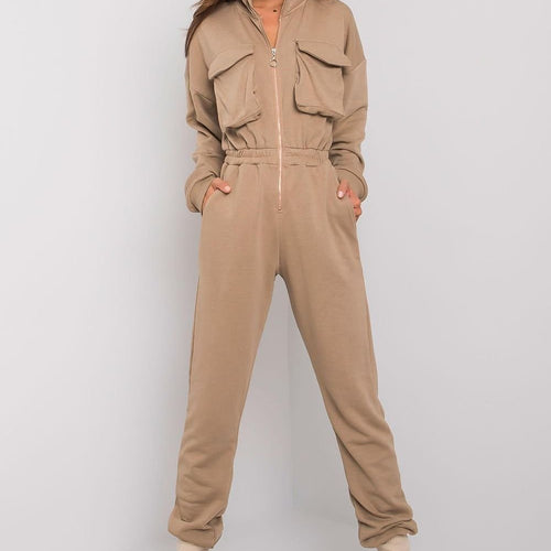 Dark beige cotton zip-up jumpsuit. Perfect for everyday wear. Cotton 70 % Polyester 30 % Size Hips width Waist width L/XL 102-106 cm 84-96 cm S/M 90-94 cm 72-86 cm
