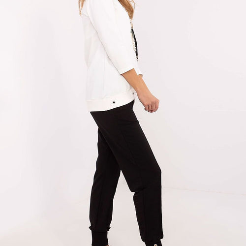 Stylish and comfortable sweatshirt set, consisting of a sweatshirt and pants, is an ideal choice for everyday styling. Made from a blend of cotton and elastane, it ensures comfortable wear and freedom of movement. The sweatshirt has a round neckline, 3/4 sleeves and a striking teddy bear print on the front, which adds to its charm. The pants, with long...