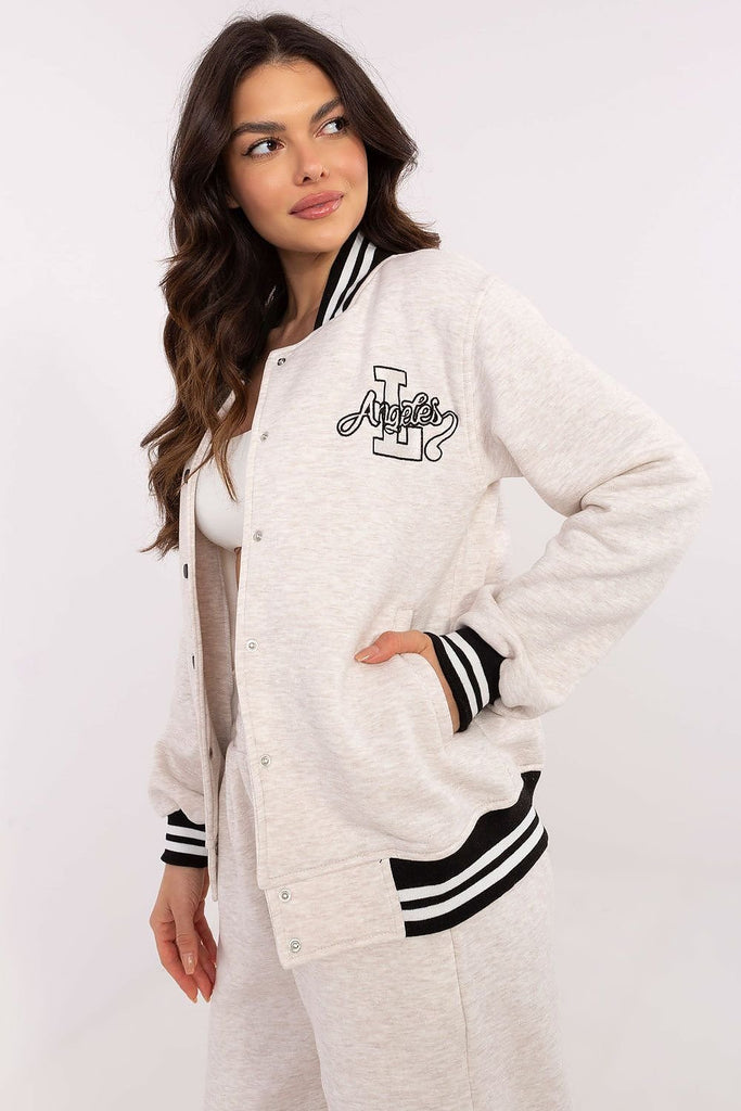 Women's bomber jacket in casual style is a combination of classic and modern accents, perfect for everyday wear. Made of a blend of cotton and polyester, it offers comfort, durability, and a pleasant feeling of warmth thanks to the insulation, making it an excellent choice for cooler days. The standard length model has long sleeves and a stand-up collar that...
