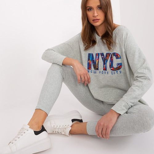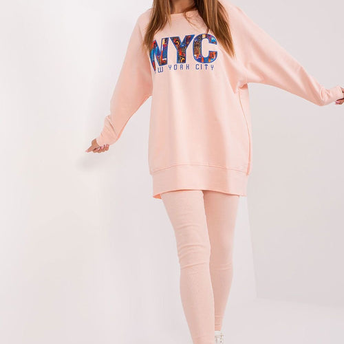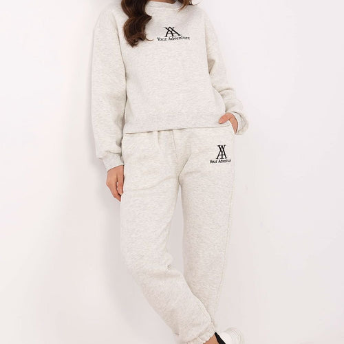 Sweat suit consisting of a hoodie and pants, designed with everyday comfort and stylish look in mind. Made of a blend of cotton and polyester, it ensures wearing comfort and durability, and the additional insulation makes the set perfect for cooler days. Hoodie with long sleeves, round neckline, and embroidery on the front. Long pants with a high waist, tie...