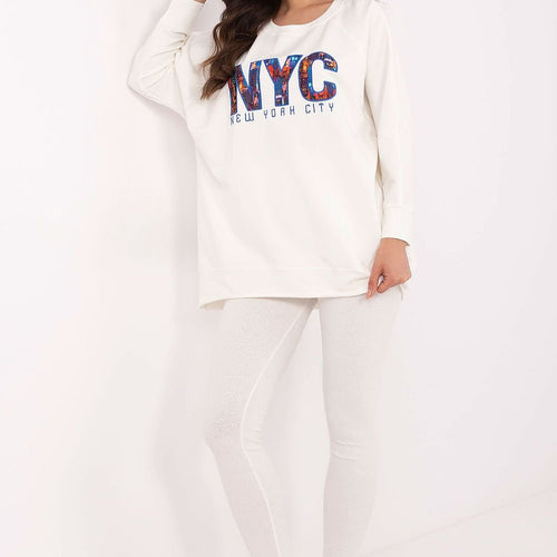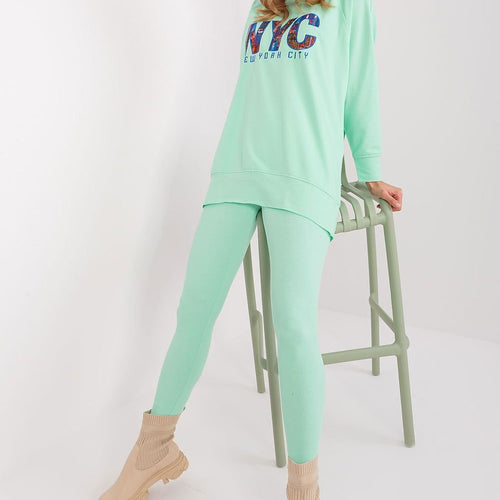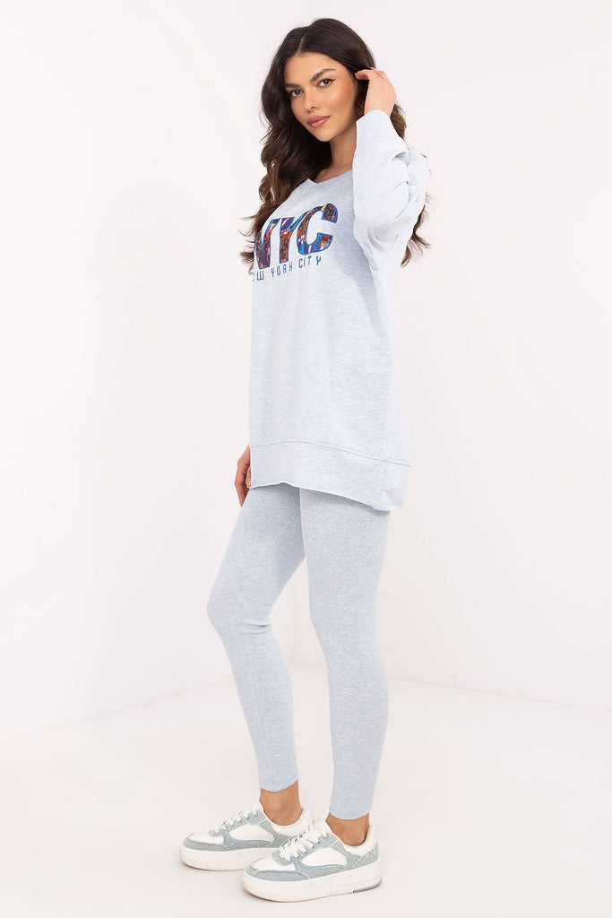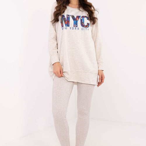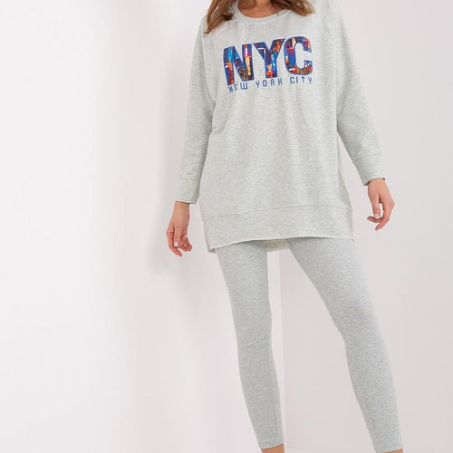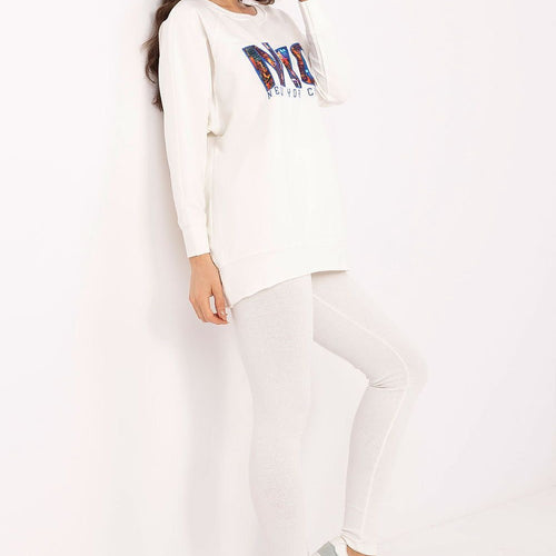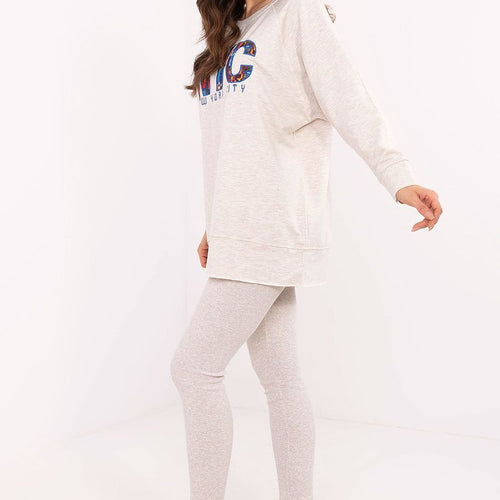 Women's set consisting of a sweatshirt and leggings is the perfect combination of comfort and style. The sweatshirt has a print on the front, which gives it a unique character and emphasizes the modern design. Made from a blend of high-quality cotton, polyester and elastane, it provides comfort and durability. Leggings are distinguished by a high waist, which perfectly emphasizes...