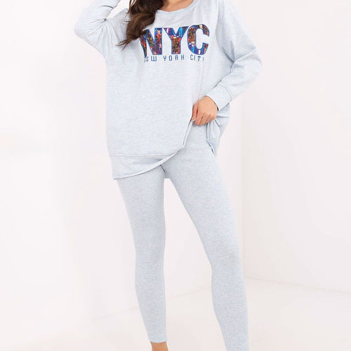 Women's set consisting of a hoodie and leggings is the perfect combination of comfort and style. The hoodie has a print on the front, which gives it a unique character and emphasizes the modern design. Made of a blend of high-quality cotton, polyester, and elastane, it provides comfort and durability. The leggings stand out with a high waist, which perfectly...