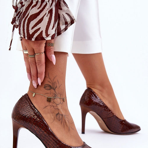 Classic women's pumps on a stiletto heel with a height of 10,5 cm. Their timeless cut with tapered noses is sure to catch your eye : ) See for yourself that they deserve to be in your closet as well! Outer material - ecological leather. fabric artificial leather Heel height 10,5 cm Size Insole lenght 36 23,5 cm 37 24...