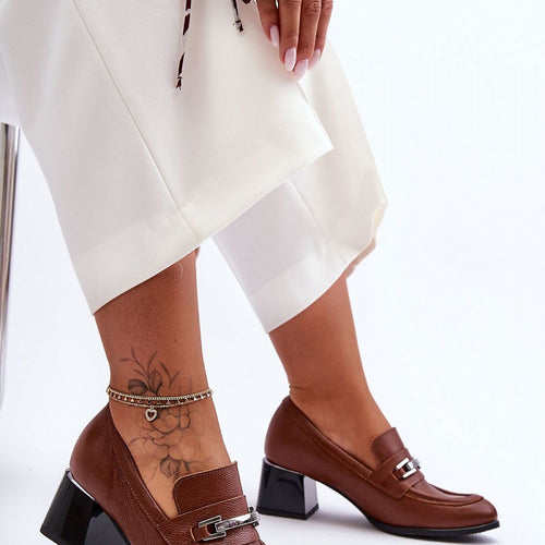 Comfortable pumps with soft insole made of natural leather will ensure comfortable use even all day long! Set on a massive, not high heel. A great model for work, a family celebration or an important meeting. The shoes have a decoration on the front of the upper and a stiffened heel counter. Do not wait any longer and buy today!...