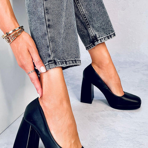 Women's pumps with a wide heel. A striking heel of 10,5 cm and a platform - 1,5 cm will make your legs insanely long, and square toes are extremely comfortable.... If you follow the trends then you must have them! They are made of matte ecological leather.... fabric artificial leather Heel height 10,5 cm Platform height 1,5 cm Size Insole...