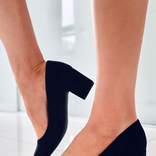 Women's suede pumps with a heel height of 6 cm. This is an exceptionally shapely model with comfortable, rounded noses - they are sure to captivate lovers of classic cuts.... Stable, low heel will make you love them even more, and the soft inner insole with a cushion will provide comfort on every step : ) Outer material ? ecological...