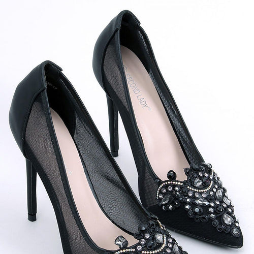 Dazzling women's stilettos. If you like to attract the eyes, then these shoes with a striking application of glittering stones are for you! The shapely cut with a delicate pointed nose makes the leg look graceful in them, and the 12 cm high heel will provide fabulous long legs! Perfect for special occasions - weddings, balls, proms.... Outer material -...