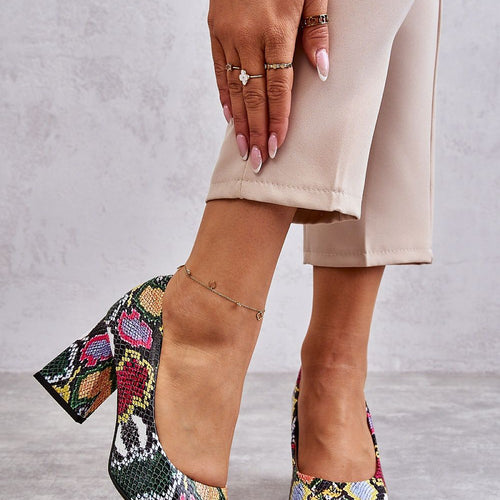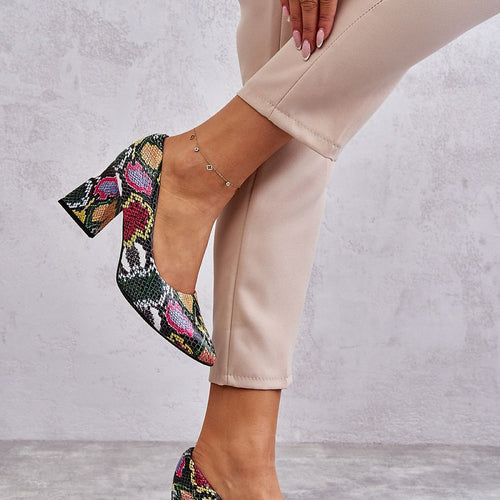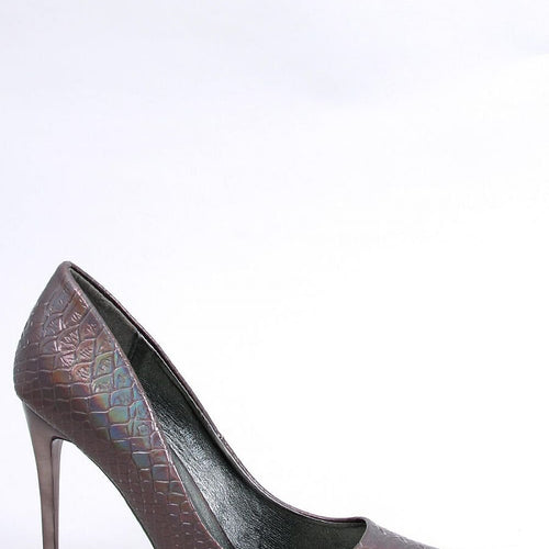Ladies' veneer stilettos. They have an unusual texture with an iridescent finish.... They are beautifully presented! The cut with tapered noses is not only fashionable, but also exceptionally shapely, and the 12 cm high heel will provide fabulously long legs! See for yourself that they deserve to be also in your closet for special occasions.... Outer material - ecological leather....