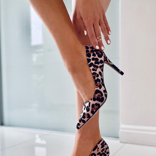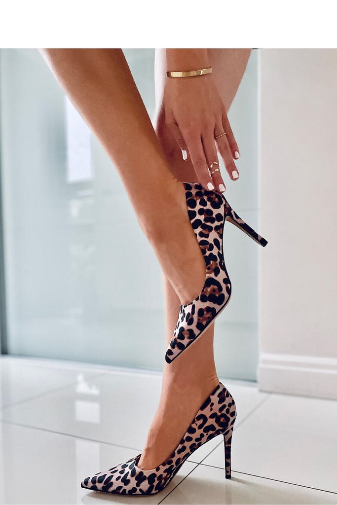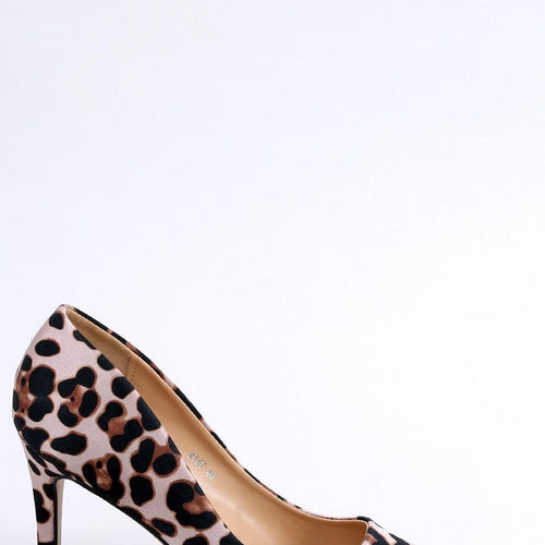 Women's pumps on a stiletto heel with a height of 10 cm. The pattern in spots gives them character - we guarantee that you will not pass by them indifferently : ) Cut with a delicate pointed nose makes the leg looks exceptionally graceful in them. Perfect for special occasions - weddings, balls, proms.... They are made of fabric imitating...