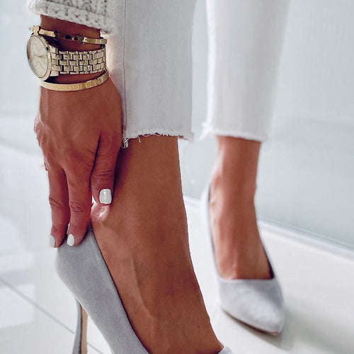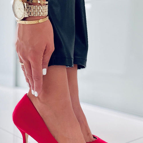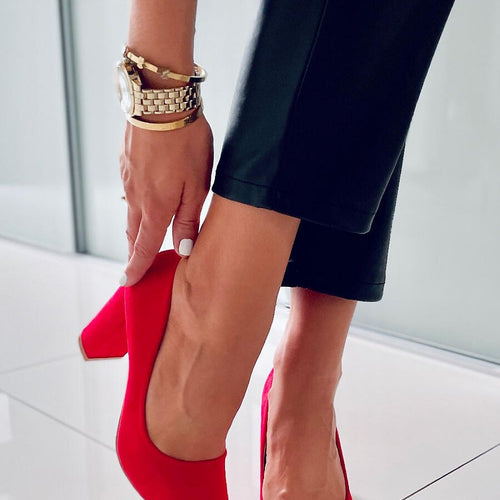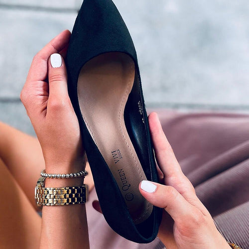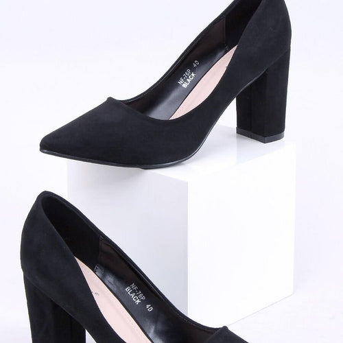 Women's suede heeled pumps. The shoes are distinguished by a classic cut with shapely, tapered nose on a 9.5 cm high stiletto heel. They present themselves beautifully on the leg.... See for yourself that they deserve to be in your closet as well! Outer material - ecological suede. fabric ecological suede Heel height 9,5 cm Size Insole lenght 36 23...
