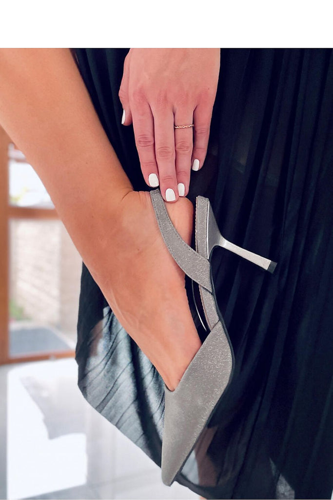 Women's formal stilettos with an open heel. They catch the eye with iridescent finish - they will surely steal your heart : ) Stiletto heel with a height of 8.5 cm will beautifully slenderize your silhouette.... An ideal choice for special occasions - prom, wedding or ball.... Shine in them and you too! Outer material ? fabric. fabric fabric Heel...