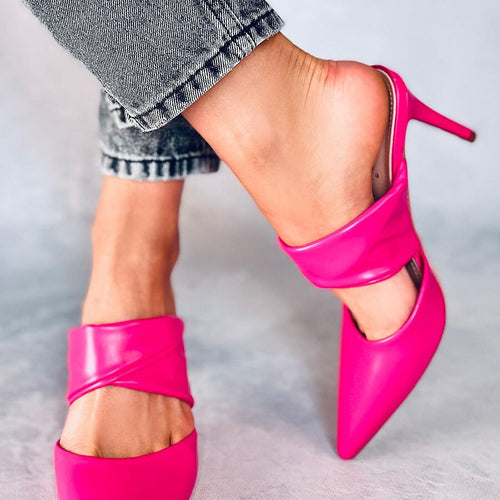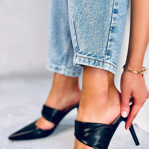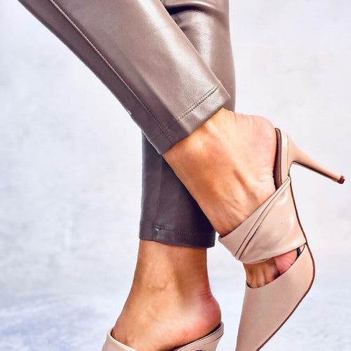 Women's veneer stilettos with an open heel. You will fall in love at first sight in these shoes with a charming bow : ) Heel height of 9 cm will beautifully slenderize your silhouette, as well as provide incredible comfort on every step.... Do not wait and order them today! Outer material ? ecological leather. fabric artificial leather Heel height...