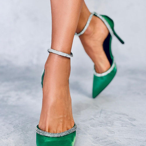 Women's pumps on a stiletto heel with a height of 11 cm. Shiny cubic zirconias beautifully highlight the foot, so they will attract all eyes.... Feel like a real star in them : ) They are made of satin fabric, which emphasizes their unique style. Perfect choice for special occasions - prom, wedding or ball. Outer material ? fabric. fabric...