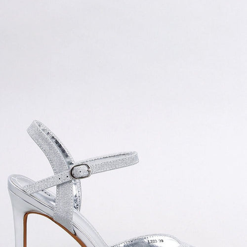 Iridescent women's pumps on a stiletto heel with an open heel. The eye is drawn to the beautifully shimmering finish and subtle checkerboard pattern - they are sure to steal your heart : ) Heel height of 11 cm will provide fabulous long legs.... An ideal choice for special occasions - prom, wedding or ball.... Outer material ? fabric. fabric...