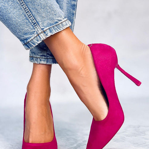 Women's suede pumps on a stiletto heel with a height of 11 cm. The shoes are characterized by a timeless cut with graceful, tapered noses. They present themselves beautifully on the leg.... See for yourself that they deserve to be in your closet as well! Outer material - ecological suede. fabric ecological suede Heel height 11 cm Size Insole lenght...