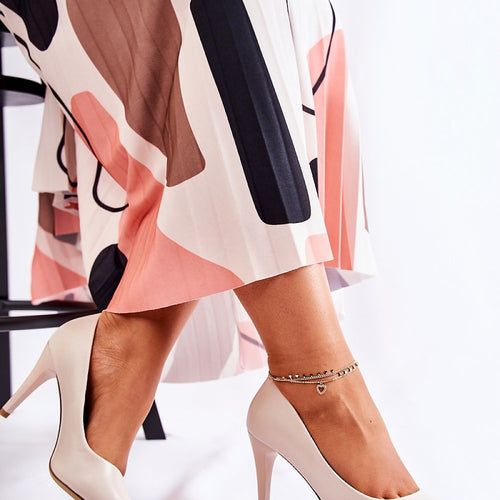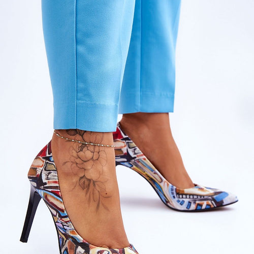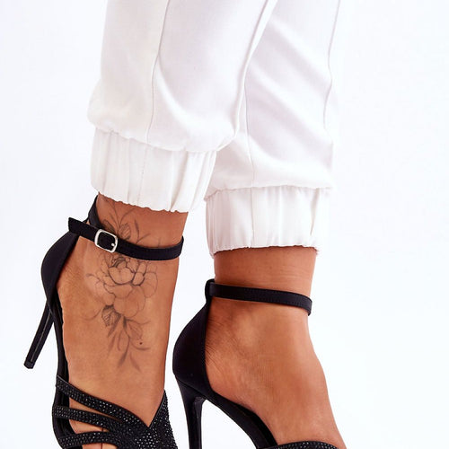 Perfect stilettos for summer days! Made of textile material. Model fastened with a buckle with an adjustable strap. The pumps are set on a stiletto heel, which perfectly slenderizes and optically lengthens the legs. The stiffened heel counter allows for proper stabilization of the foot. These stilettos will look perfect when combined with elegant styling! fabric fabric Footbed artificial leather...