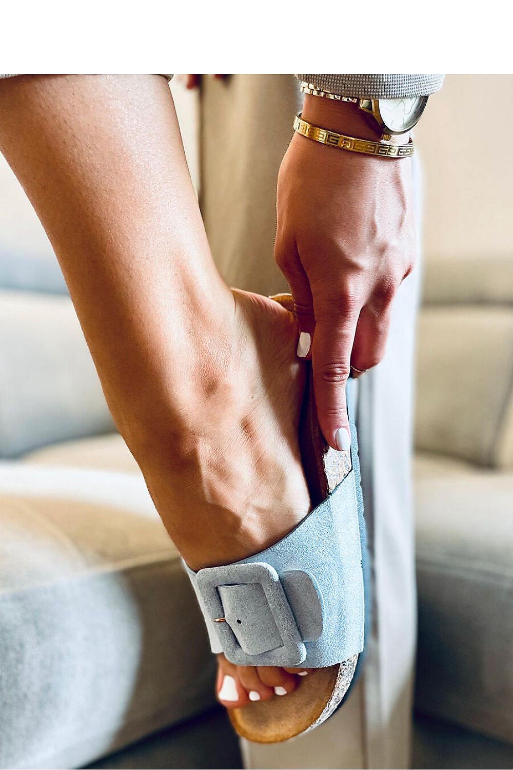Women's suede flip-flops with a cork sole. They have a wide strap with an adjustable buckle for a perfect fit on the foot. These incredibly comfortable model with a profiled inner insole. You will surely fall in love with them from the first time you put them on! External material ? ecological suede.
