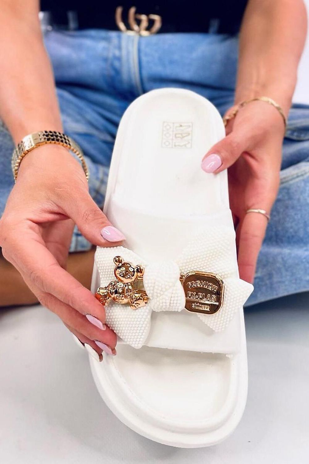 Women's platform sandals. A bow with an adorable golden bear will surely steal your hearts :) This unique model is the most comfortable and fashionable solution for summer days... Don't wait, order them today! Outer material - synthetic.