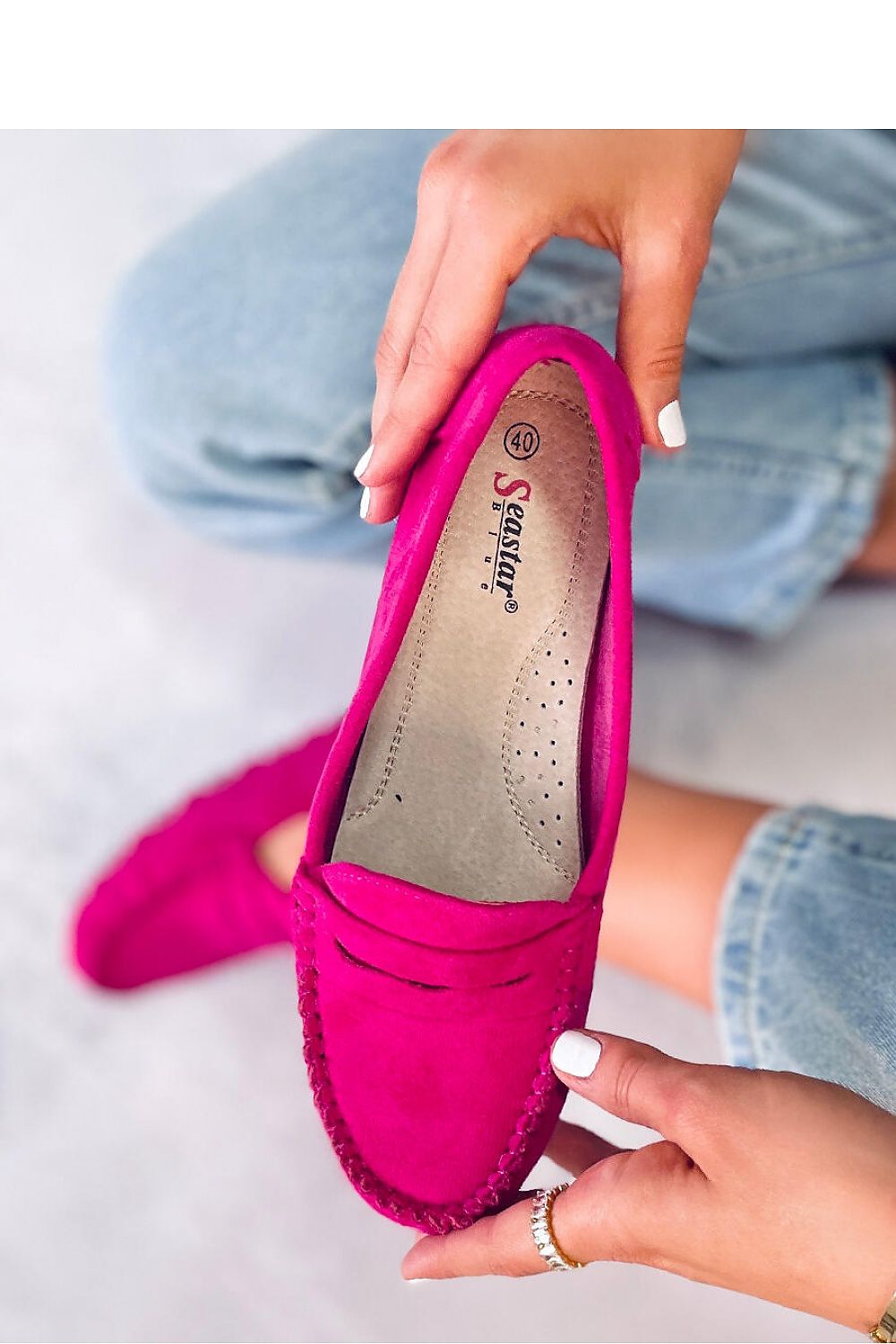 Women's suede moccasins. Their timeless cut will never go out of fashion! Moccasins are very popular among female fans of comfort ? soft inner insole made of natural leather is comfortable for the foot. These are the perfect shoes for every day... Outer material - ecological suede.
