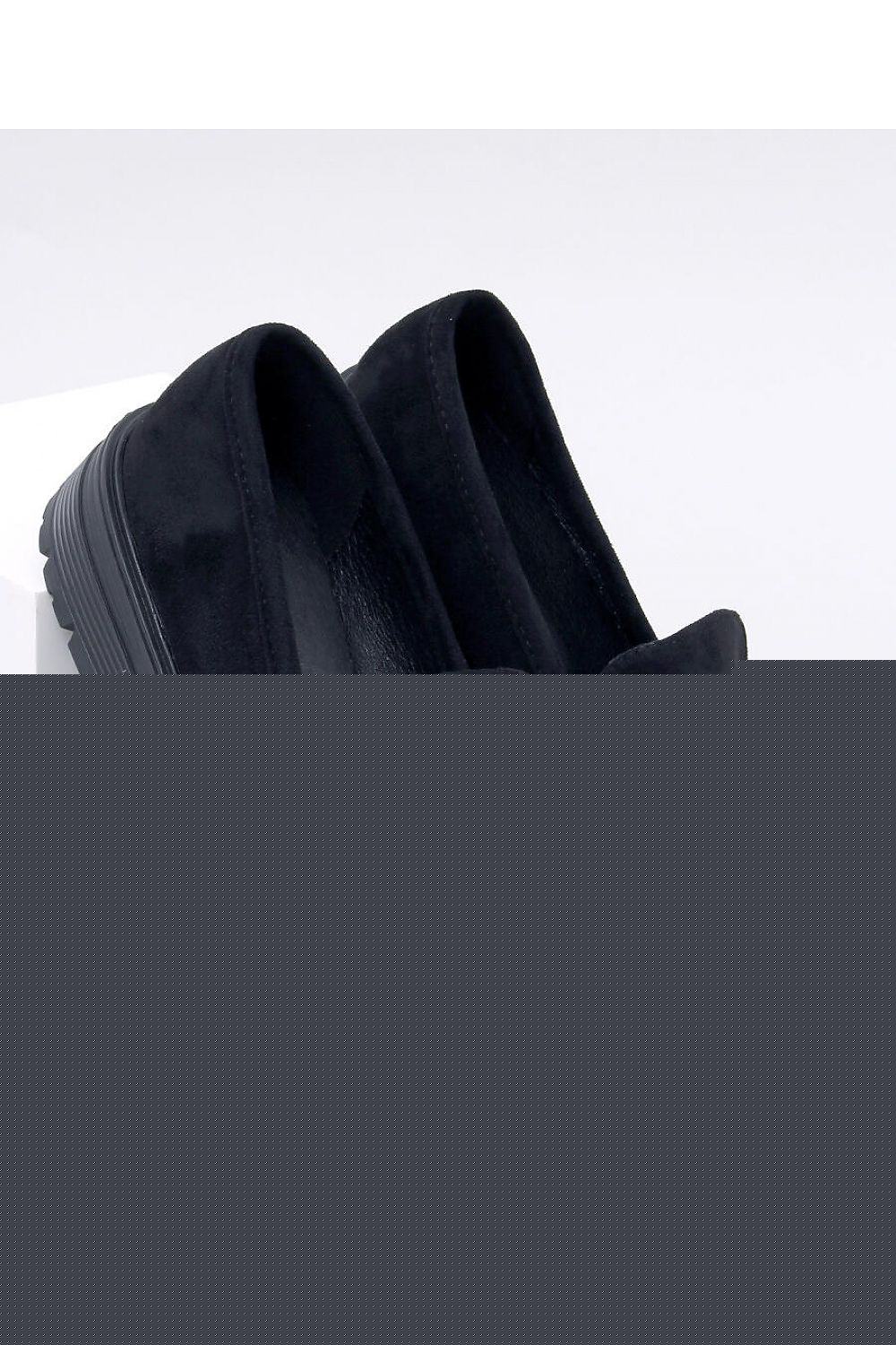Black women's moccasins on a thick sole. The model is made of eco-suede, which, combined with a decorative buckle, looks extremely stylish. If you rely on minimalism in your styling, you've come to the right place : )
