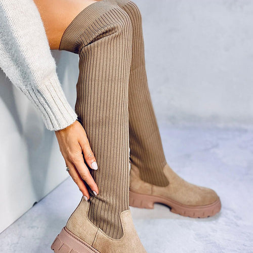 Musketeers - women's jackboots on a high sole. Their fashionable character is given by the elastic upper, which also provides a perfect fit. The model pulls on like a sock, so putting on is effortless. Give them a chance to conquer your closet! : ) Warming - soft fur in the foot part. fabric suede ecological + fabric warmers ~delikatne...