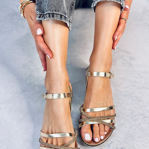 Women's sandals on a low heel - 5,5 cm. Shiny, brocade finish looks phenomenal, and the adjustable clasp sensually emphasizes the ankle.... Subtle zircons additionally give the shoes a unique charm. We guarantee that you will feel like a real star in them! Outer material ? fabric. fabric fabric Heel height 5,5 cm Size Insole lenght 36 23 cm 37...