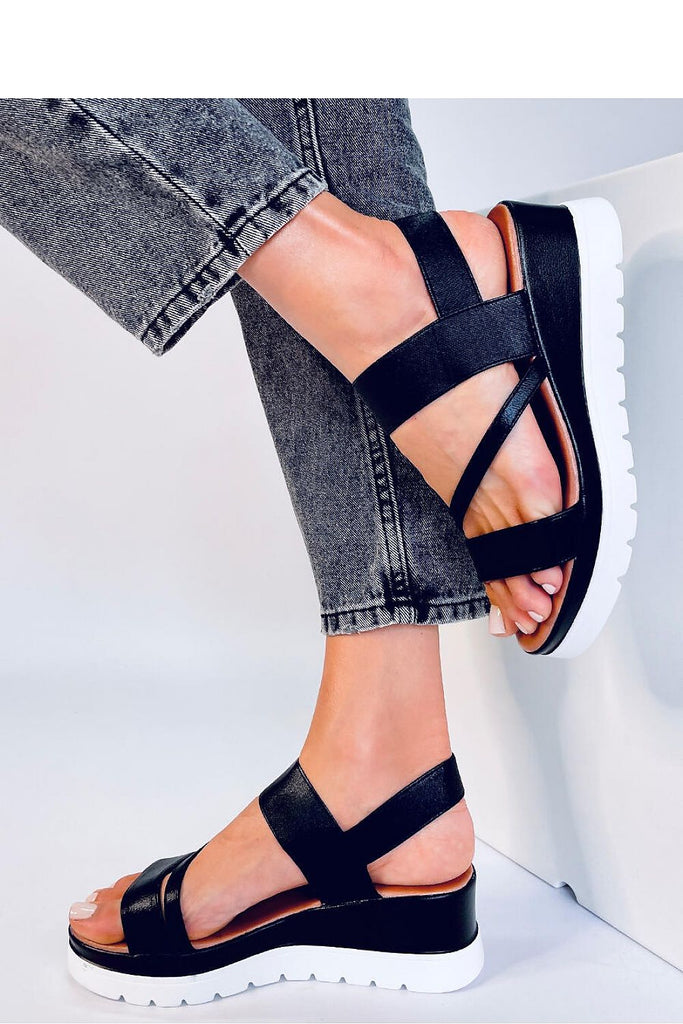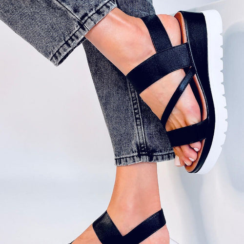 Women's open toe sandals on an 8 cm high anchor. The most fashionable color combination and crisscrossing straps on the midfoot attract the eyes.... If you want to look special then you must have them : ) Outer material ? fabric + ecological leather. fabric fabric + leatherette Heel height 8 cm Platform height 2 cm Size Insole lenght 36...