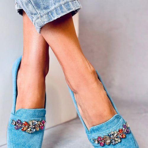 Women's suede moccasins with zircons. The combination of the most fashionable cut with square toes and sparkling and colorful stones will catch your eye : ) Soft inner insole made of natural leather will provide comfort at every step.... They will definitely meet your expectations : ) Outer material - ecological suede. fabric ecological suede Footbed natural leather Size Insole...