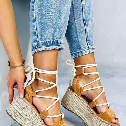 Women's espadrilles on a heel of 8 cm and a platform of 5,5 cm. They will make your legs insanely long : ) Braided finish in boho style and tying around the ankle beautifully emphasizes the foot.... These unique shoes look simply phenomenal! You must have them : ) Outer material ? ecological suede. fabric ecological suede Heel height 8...