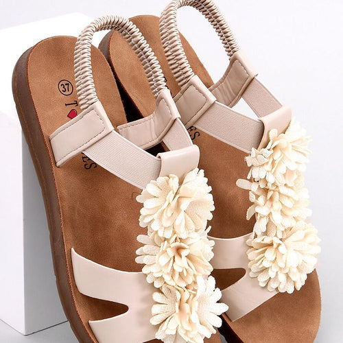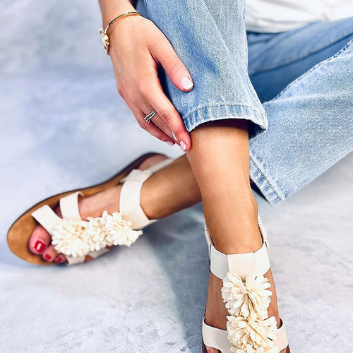 Women's sandals on a flat sole. Floral application adds a unique charm to the shoes - you will fall in love with them at first sight : ) Choosing them you do not have to worry about comfort - they will provide comfort at every step! External material ? ecological leather + fabric. fabric leatherette + fabric Size Insole lenght...