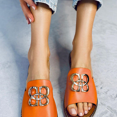 Women's flip-flops on a flat sole. For the real stars of this summer we have a model with stylish decoration and striking piping. If you want to look unique and enjoy comfort at every step then you must have them : ) Outer material - ecological leather. fabric artificial leather Size Insole lenght 36 23,5 cm 37 24 cm 38...