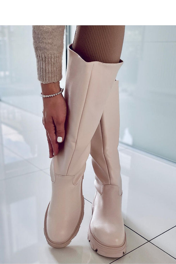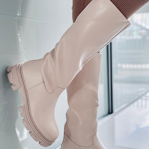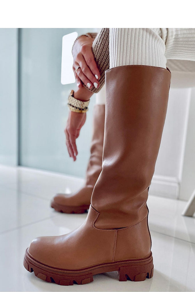 Veneer boots ? jackboots for women. Their simple design is highlighted by the most fashionable thick sole. Thanks to them you will draw attention to yourself and prove that you know about trends! Comfortable donning is provided by a simple, wide upper. They are made of organic leather, and the interior is lined with soft fur. fabric artificial leather warmers...