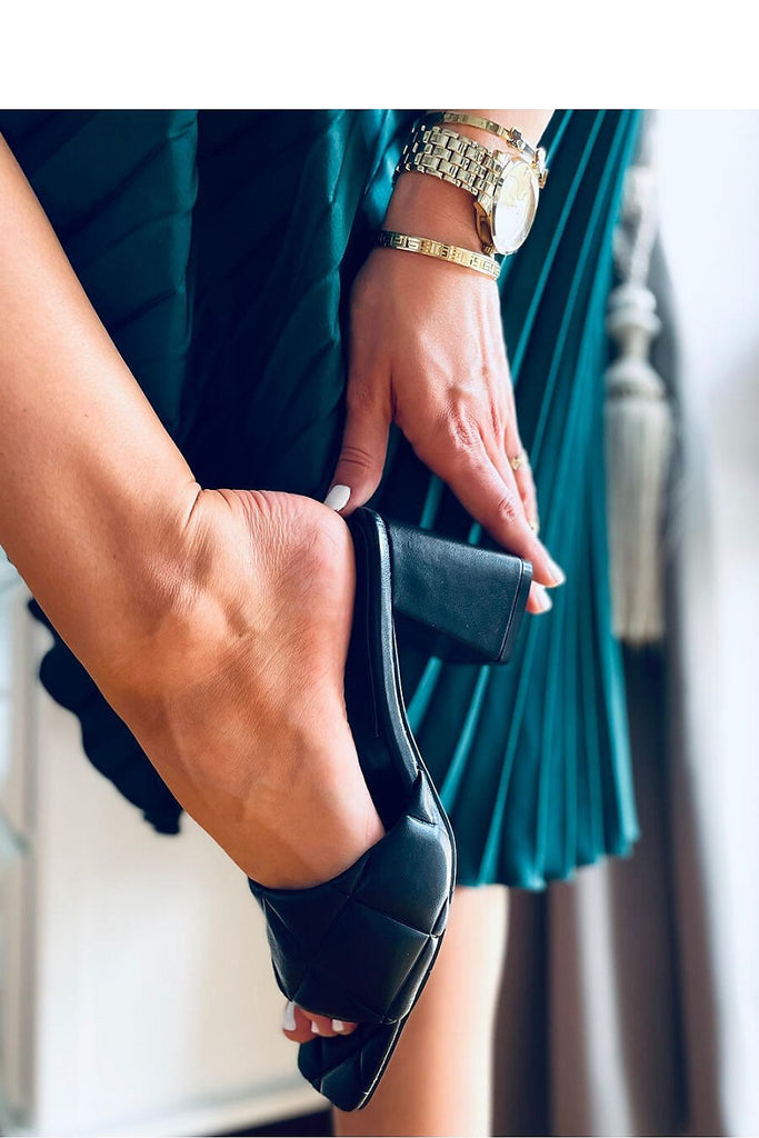 Elegant women's flip-flops on a 7.5 cm high heel. This model features the most fashionable square sole and a stylish quilted pattern. If you follow trends, these flip-flops are made for you : ) They will surely come true on special occasions... Outer material - ecological leather. fabric artificial leather Heel height 7,5 cm Size Insole lenght 36 23,5 cm...