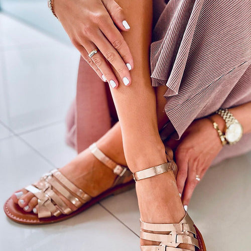 Women's flat sandals. Crossing straps beautifully emphasize your foot... Thanks to these sandals you will shine in the summer, and comfortable flat sole will provide comfort on every step. They have so called ?this something? : ) External material ? ecological leather. fabric artificial leather Size Insole lenght 36 23,5 cm 37 24 cm 38 25 cm 39 25,5 cm...