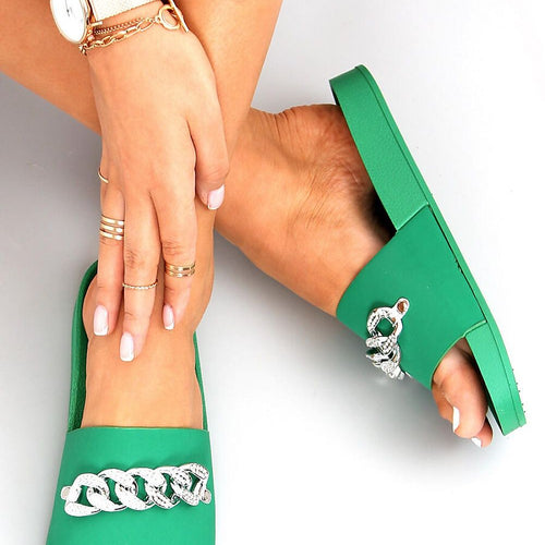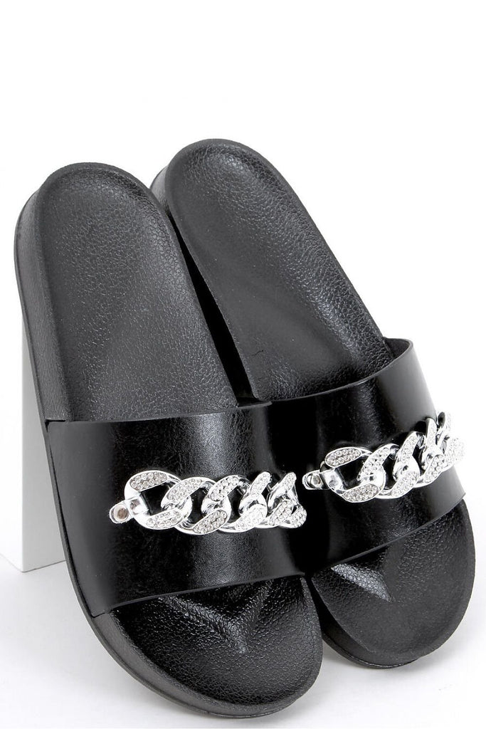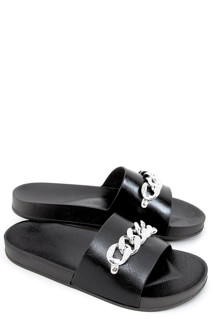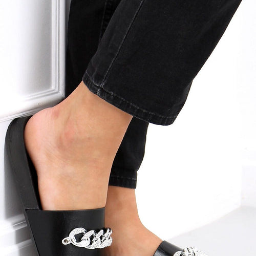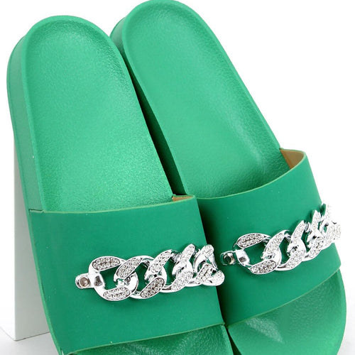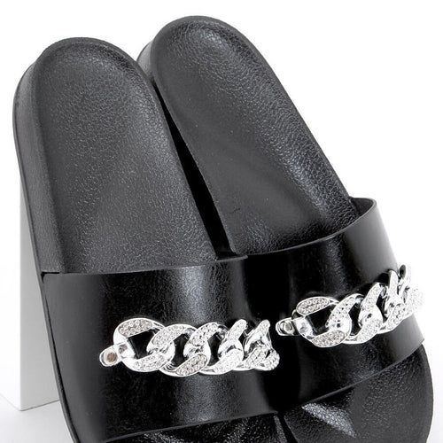 Stylish women's flip-flops on a rubber sole. The model is distinguished by this season's most fashionable chain with glittering stones - a wow effect is guaranteed! Profiled inner insert will ensure comfort on every step: ) In these shoes you will feel fashionable, feminine and extremely comfortable - see for yourself! Outer material ? ecological leather. fabric leatherette + rubber...