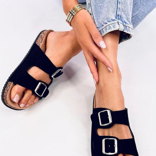 Women's suede slides on a cork sole. Adjustable buckles ensure a perfect fit to the foot, and the contoured insole guarantees comfort with every step ? see for yourself! These are the perfect shoes for summer : ) Outer material - eco-suede. fabric ecological suede Size Insole lenght 36 23 cm 37 23,5 cm 38 24 cm 39 24,5 cm...