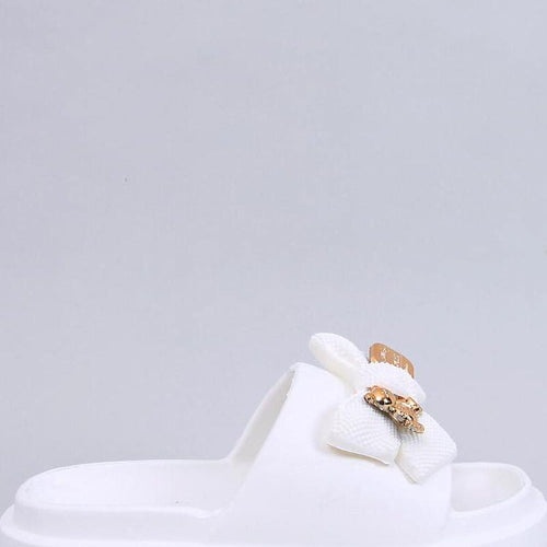 Women's platform sandals. The bow with an adorable golden bear will surely steal your hearts :) This unique model is the most comfortable and fashionable solution for summer days... Don't wait and order them today! Outer material - synthetic. fabric ~tworzywo piankowo-gumowe