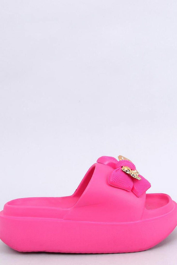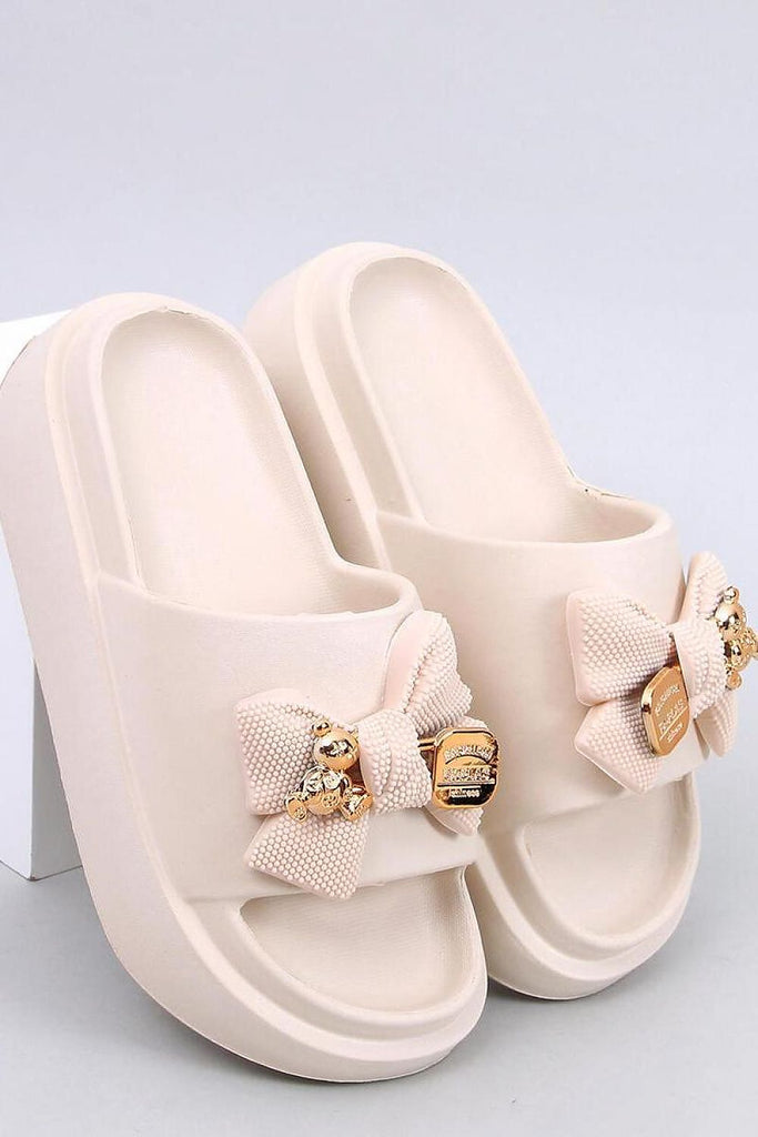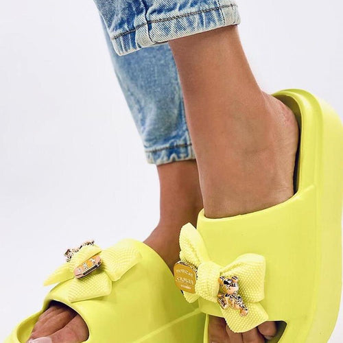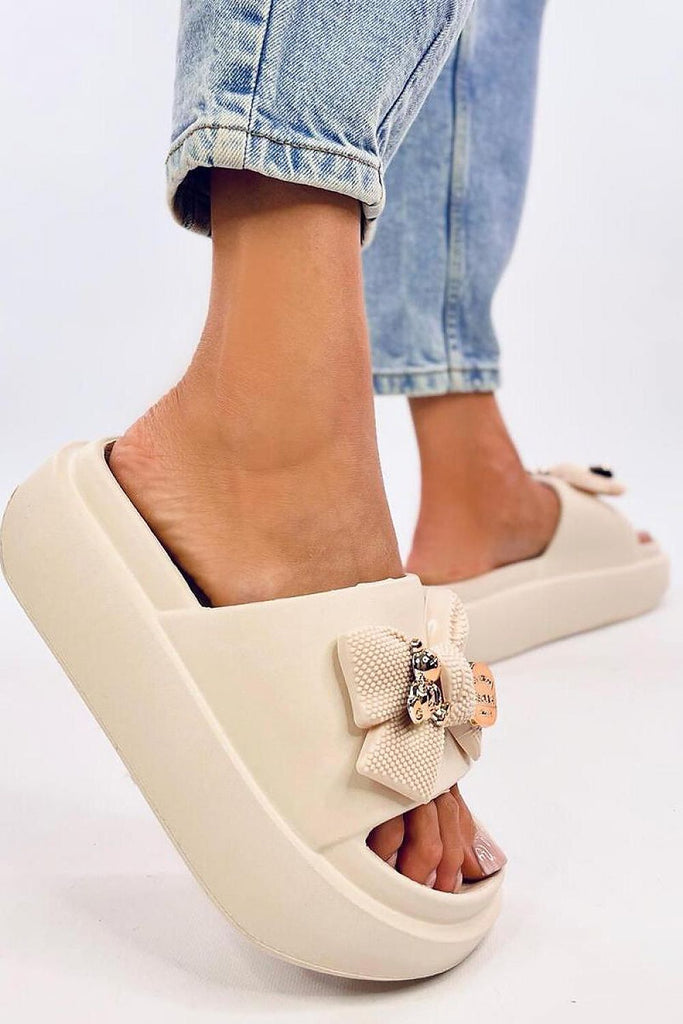 Women's platform sandals. A bow with an adorable golden bear will surely steal your hearts :) This unique model is the most comfortable and fashionable solution for summer days... Don't wait, order them today! Outer material - synthetic. fabric ~tworzywo piankowo-gumowe