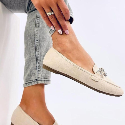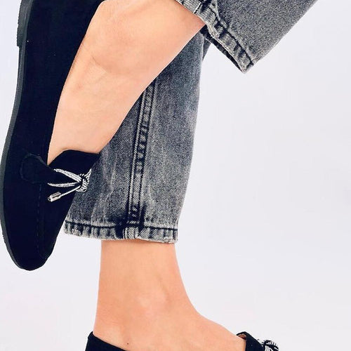 Women's suede loafers. The model features a classic and sleek design with a beautiful bow adorned with sparkling rhinestones. An additional advantage is the comfortable inner insole with padding. Enjoy comfortable and stylish footwear every day :) Outer material: eco-friendly suede. fabric ecological suede Size Insole lenght 36 23 cm 37 23,5 cm 38 24 cm 39 25 cm 40...