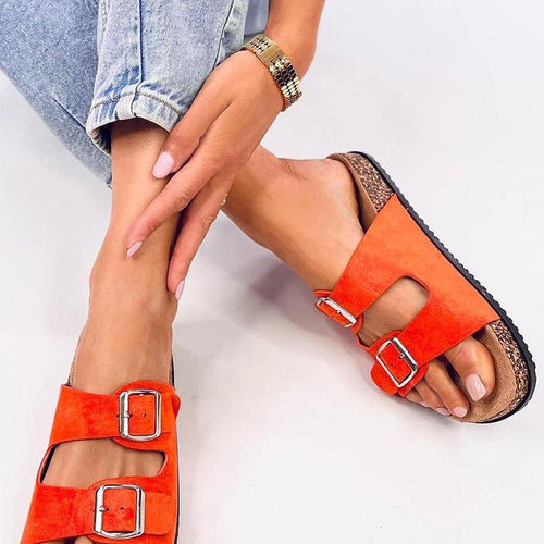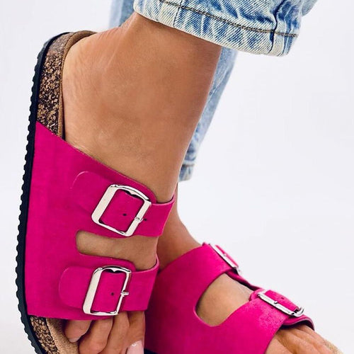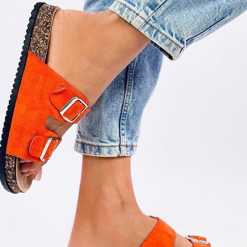 Women's suede slippers with a cork sole. Adjustable buckles ensure a perfect fit to the foot, and the contoured insole guarantees comfort with every step ? see for yourself! These are perfect shoes for summer :) Outer material - eco-friendly suede. fabric ecological suede Size Insole lenght 36 23 cm 37 23,5 cm 38 24 cm 39 24,5 cm 40...