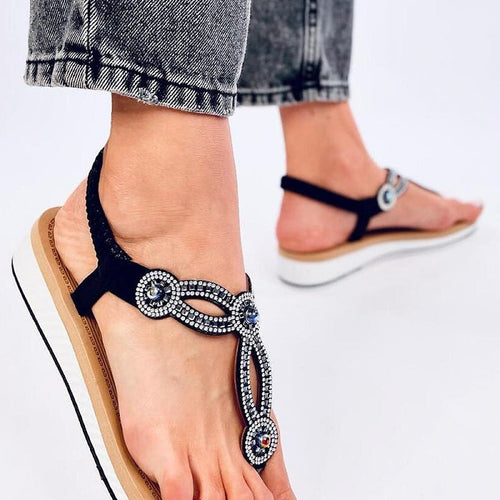 Women's sandals - flip flops on a rise - 3.5 cm In these shoes you can fall in love! Impressive, glittering zirconia application catches the eye and will beautifully emphasize the holiday tan.... If you want to look special then you simply must have them! Outer material ? ecological leather + fabric. fabric leatherette + fabric Heel height 3,5 cm...