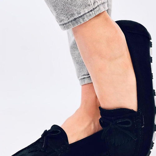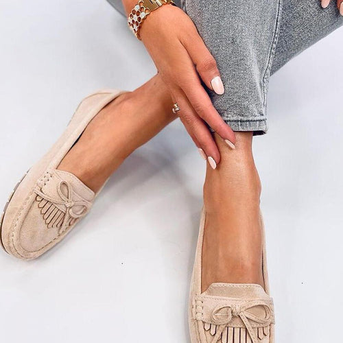 Suede moccasins for women. The model has a classic cut with a decorative bow and tassels. Moccasins are very popular among female fans of comfort ? soft inner insole with cushioning will provide comfort on every step.... Outer material - ecological suede. fabric ecological suede Size Insole lenght 36 23,5 cm 37 24 cm 38 24,5 cm 39 25 cm...